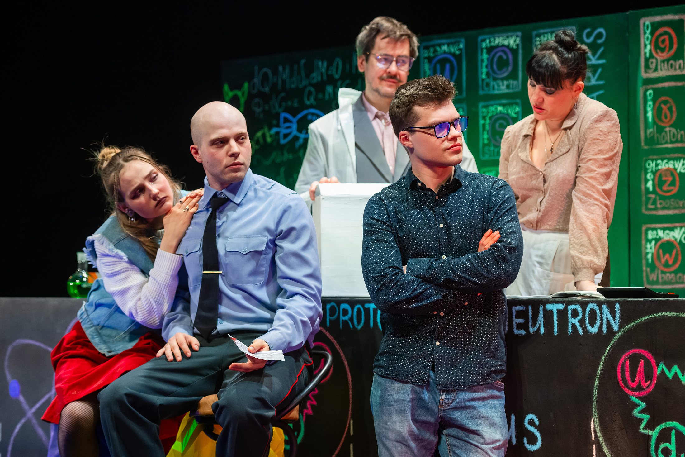 Одного названия уже достаточно, чтобы заинтересоваться этим спектаклем. Герои выпивают в баре и играют в «стикеры». Но спрашивая: «Я реально существую?», вряд ли подозревают, как на их примере зрители убедятся, что квантовая механика – совсем не страшно и не так уж сложно.