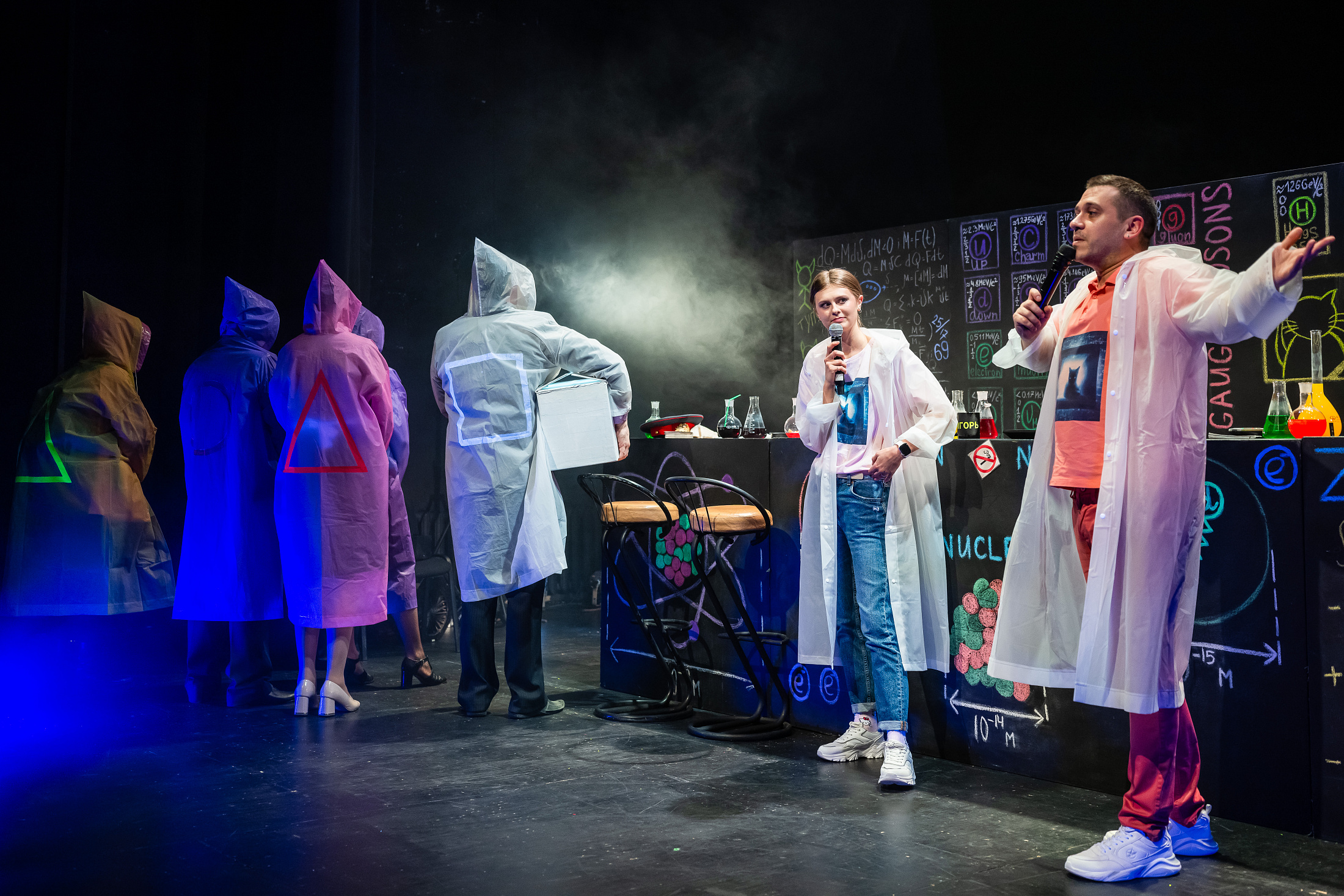 Герои выпивают в баре и играют в «стикеры». Но спрашивая: «Я реально существую?», вряд ли подозревают, как на их примере зрители убедятся, что корпускулярно-волновой дуализм, глюоны, мюоны, фотоны и прочая квантовая механика – совсем не страшно и не так уж сложно. Кроме того, они узнают, почему современная нейробиология сомневается в существовании свободы воли.