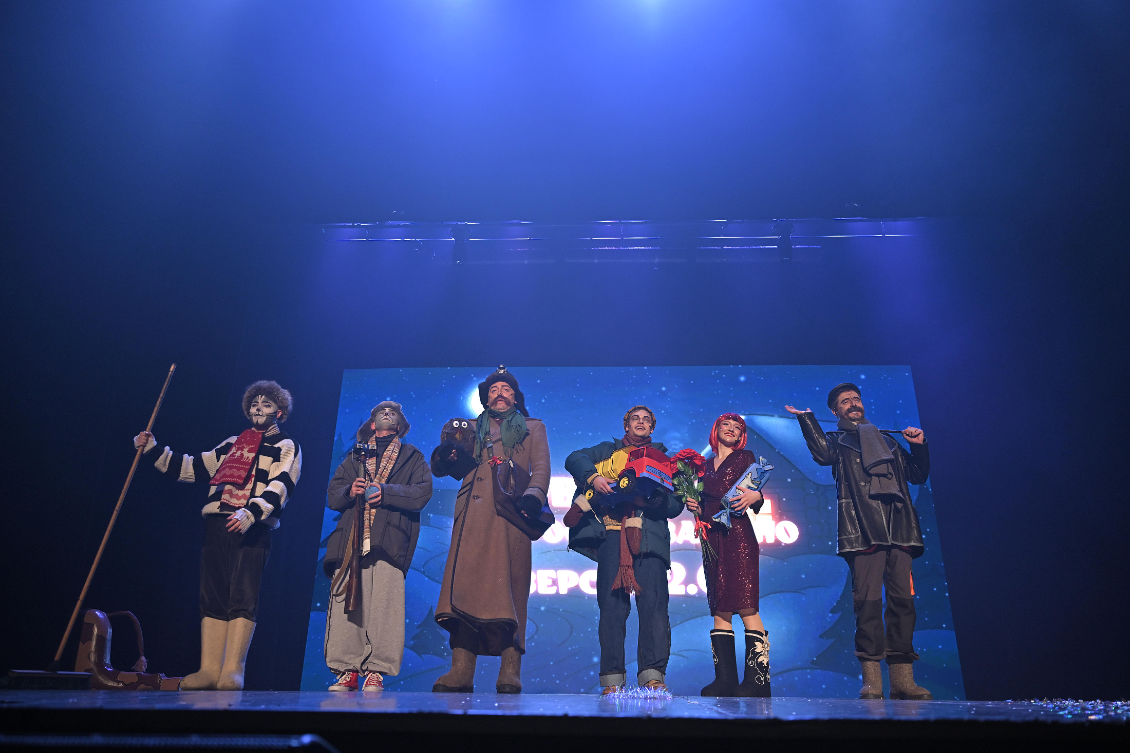 «Новый год в Простоквашино. Версия 2.0» — это семейный новогодний спектакль, созданный в эстетике рисованного мира. На сцене всё будто оживает из любимых мультфильмов: нарисованные футажи, декорации в стиле ретро-иллюстраций, актёры в костюмах, стилизованных под 2D-персонажей. Все предметы, костюмы и даже грим оформлены так, будто вы попали в нарисованный мир. Мягкие ретро-тона, тёплое освещение, мерцание снега и приглушённые тени погрузят нас всех в атмосферу зимней сказки.
