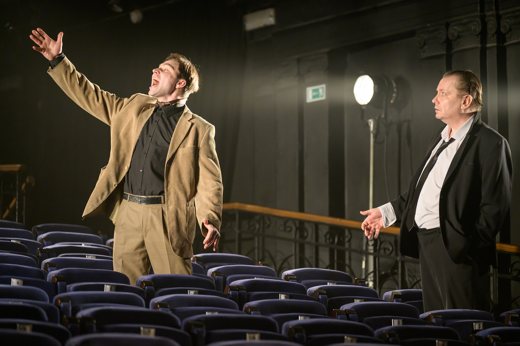 В спектакле Галины Зальцман, который станет уже третьей постановкой режиссера в Театре на Васильевском, Розенкранц и Гильденстерн – современные обыватели, втянутые в молниеносно закручивающуюся воронку обстоятельств не по своей воле и пытающиеся тщетно найти выход из театра шекспировских страстей.